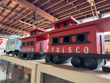 Located in the Nationally registered historic Santa Fe Freight Depot, the museum houses an amazing collection of artifacts and memorabilia related to trains, the life of the crew that worked on and around the trains, and the passengers that rode on those trains. I had a great chat with Mike Marshall about the museum's history, the collections, museums in general, the connection between this museum and the railroad museum I had toured in Yukon, and a little bit about life. Then I set off to see all the things! If you start the tour like I did by hanging a right turn when you get through the front door, you'll see the collection of dishes that were used in train dining cars. It's an unbelievably big China collection that was posthumously donated by the family of Frank "Watermelon" Campbell of Enid. You can see him immortalized on a train car in the yard. (Photo below) Once you've walked through the front room, there is a huge space filled with great train related things. Then beyond that, you begin to see tiny versions of trains. These have been set up and are maintained by the Cherokee Strip Model Railroad Association. They are in the same complex, but are a separate entity from the museum. So going here is like a two for one visit! I have another post that's specifically for them in the Okie Extras section. Click HERE for that article. It's worth a read!